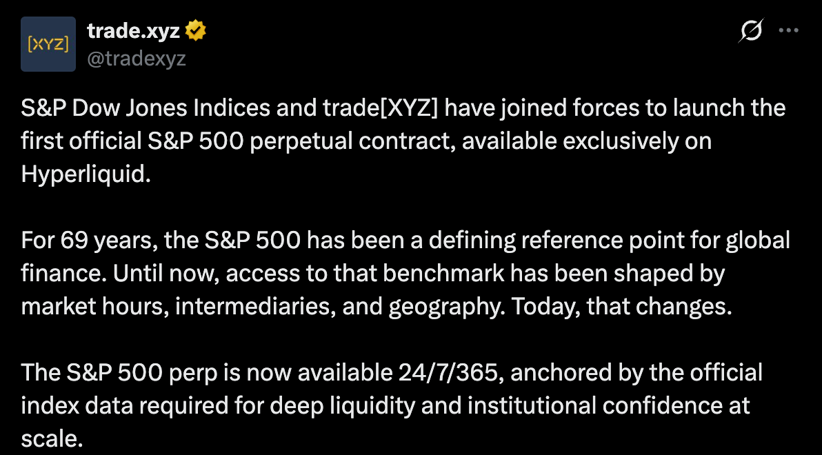 In a twist no one predicted but everyone saw coming, the S&P 500-long the poster child for “respectable” finance-has shackled itself to the blockchain. Partnering with trade[XYZ], it’s now serving up perpetual contracts on Hyperliquid, a platform where the only thing more endless than the trading hours is the list of disclaimers.