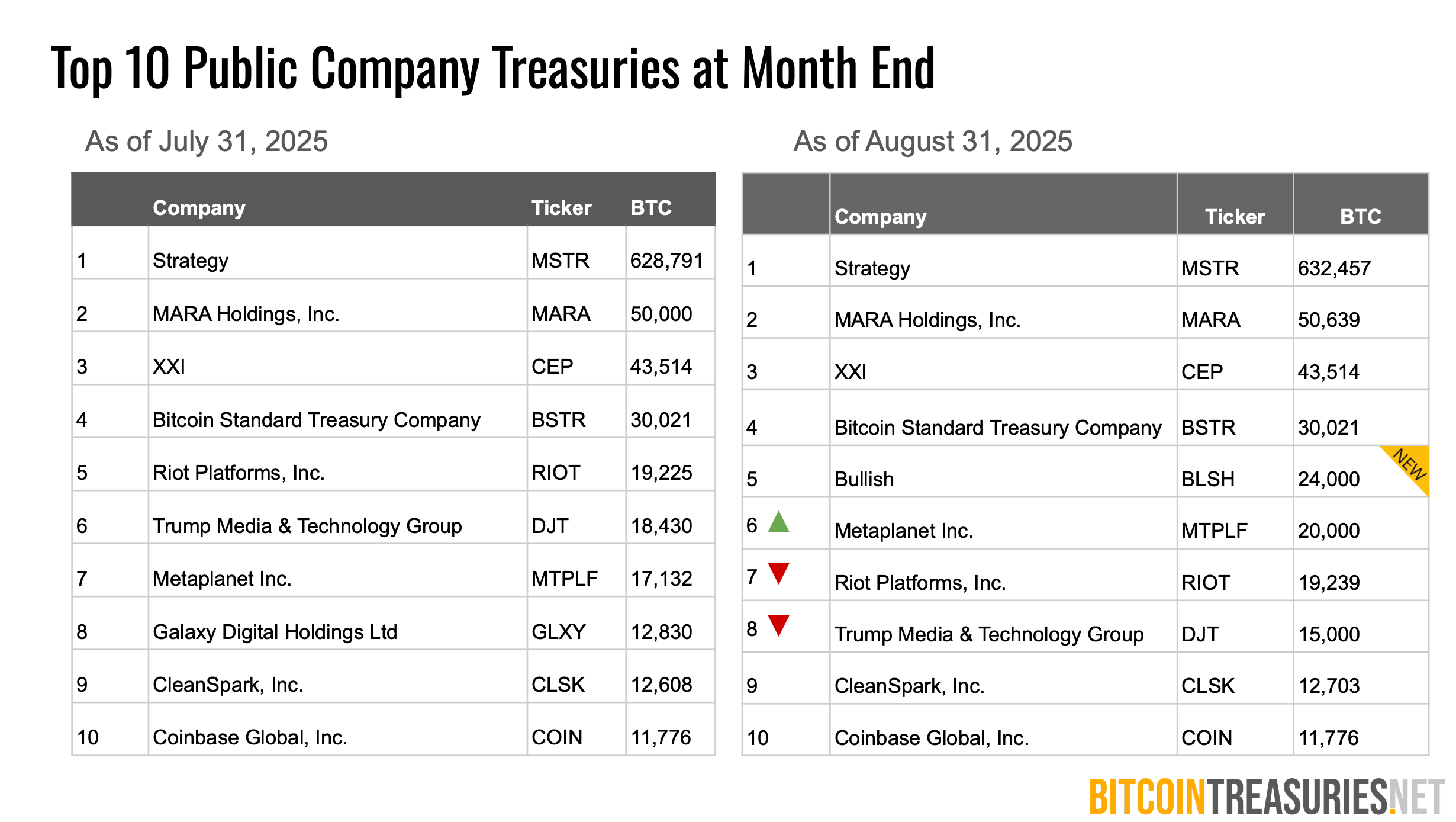The month’s biggest splash? Crypto exchange Bullish, which added 24,000 BTC after its IPO. That’s enough to make your average startup founder faint. Other notable additions: KindlyMD (5,744 BTC), Strategy (3,666 BTC), Galaxy Digital (2,894 BTC), and Metaplanet (1,859 BTC). If you’re keeping score at home, you’re already confused. 🤯