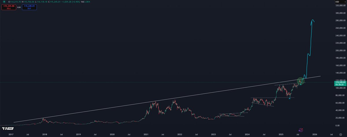 “Up only szn (season) is almost here. Each bull markets saw significant acceleration higher at inflection points tracing back to trendlines touching previous cycle’s highs.”