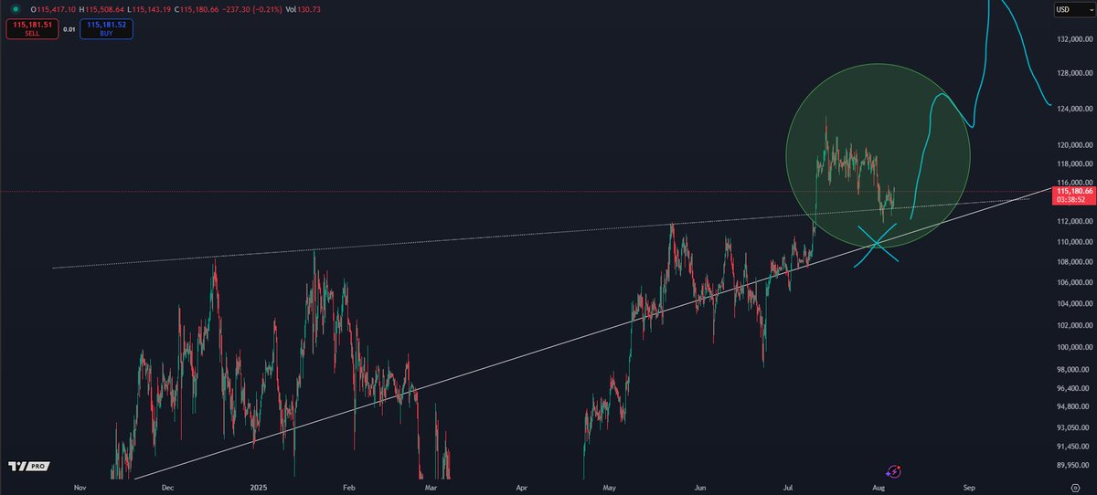 According to Kaleo, Bitcoin might be setting up a historic bull market pattern, retracing to a key level before making a massive move to the upside. It’s like a superhero getting ready to save the day, but with numbers and charts instead of capes and masks! 🦸♂️📊
