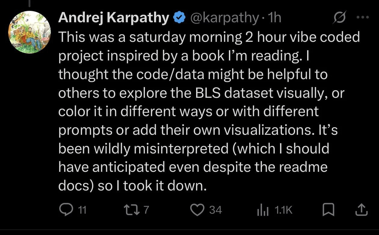 Even though it gained a lot of attention, Andrej Karpathy quickly took down the initial website and its code repository. He explained in a later post that the project was just a quick experiment—something he called a two-hour exploration sparked by a book he’d been reading. Karpathy felt that people misinterpreted the project’s experimental nature, despite his clear warnings that it wasn’t meant to be anything more.