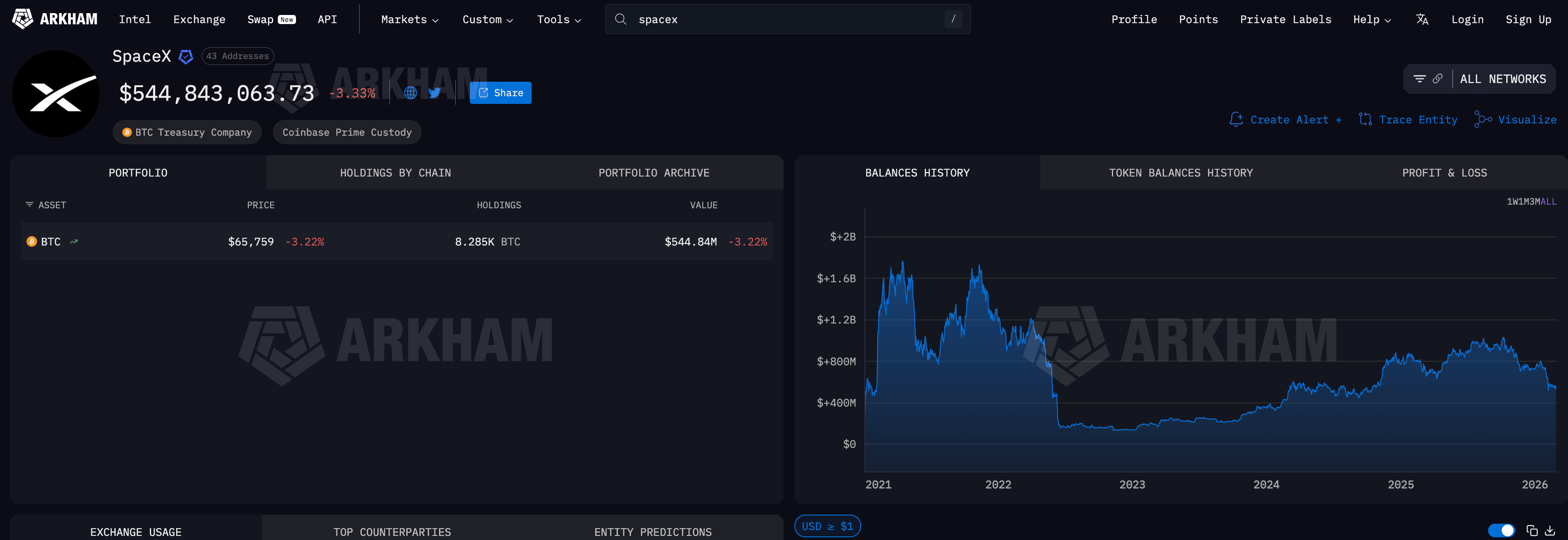 Arkham Intelligence (yes, that’s a real thing) reveals SpaceX’s bitcoins are chilling in 43 Coinbase Prime addresses, worth $544.8 million as of Saturday. Stable? Sure, if you consider a $235 million drop in three months “stable.”